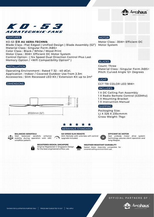 KO-53 Aerahaus Technik DC Ceiling Fan