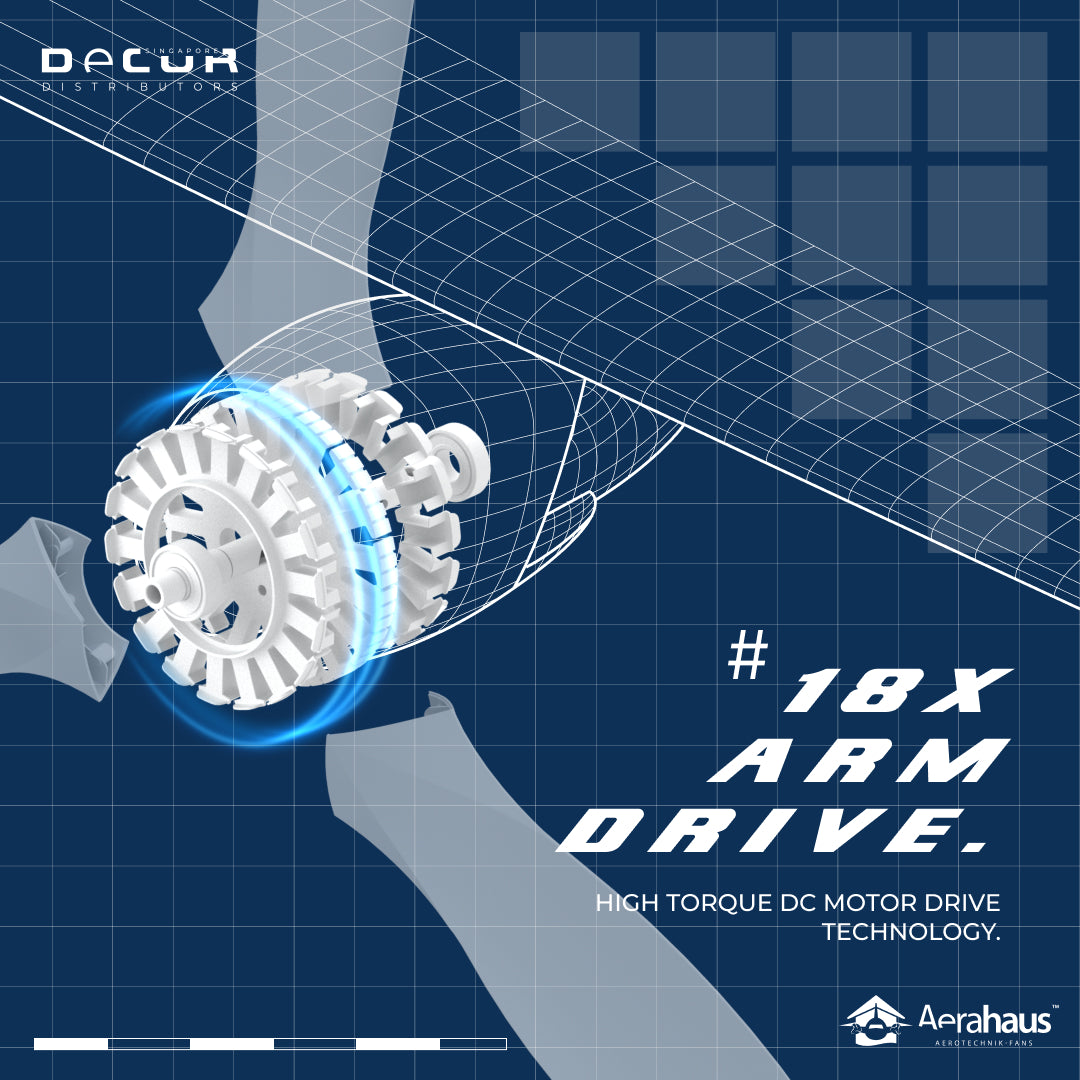 Driving the forefront of torque performance. The Aerahaus in house manufactured Hyperdrive DC Motor Technology ensures maximum efficiency with a 18X armature core enabling smooth progression across different Preset settings.