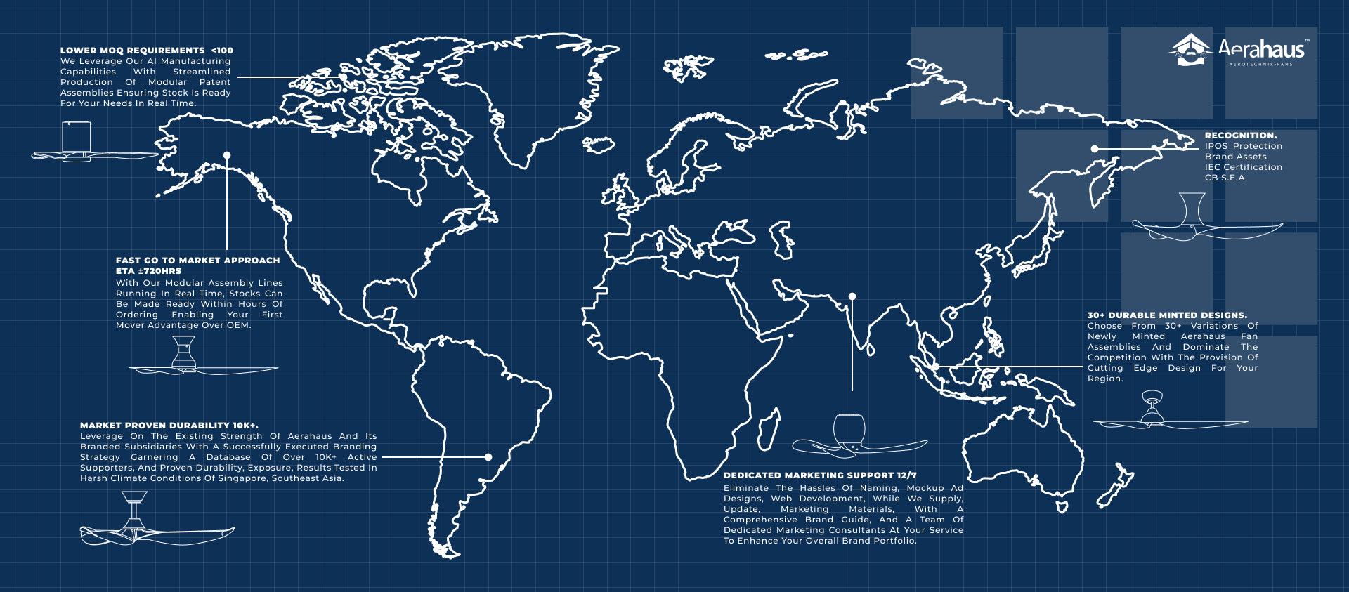With a wide clientele network over the world, The Fleet of Aerahaus is now distributes to various regions with its markets in Singapore, Philippines, New Delhi, South Korea, and more.